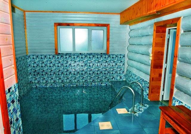 Баня «Охотничья» рассчитана на 8 человек. Бассейн со звёздным небом, ведро с сюрпризом и два этажа – вот, что отличает эту баню от других.